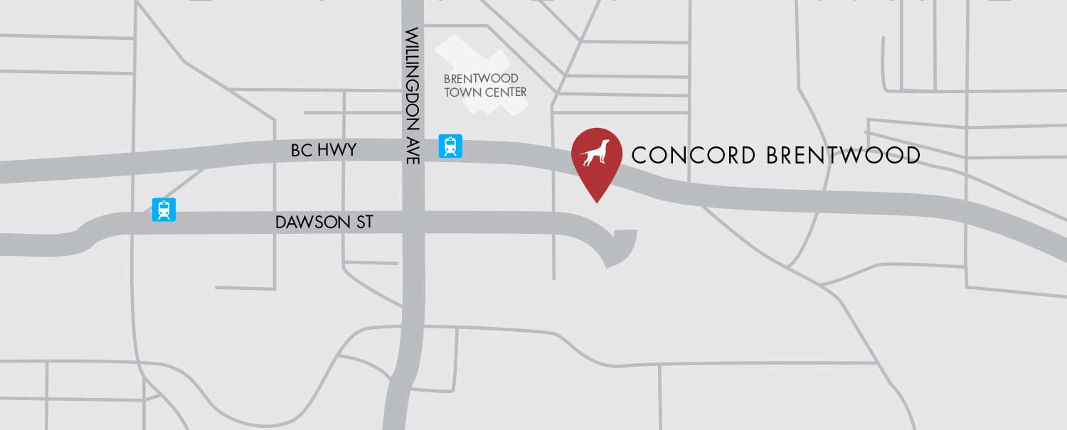 This master-planned community will consist of 10 residential towers anchored by 13 acres of park and green space, a future Village Central which will be introduced in Phase 2 consisting of a proposed new grocery store, cafes, and other service-oriented commercial retailers. Amenities are endless, including a fitness centre, entertainment lounge, games room, study room, music room and theatre room. The future Concord Super Club at Village Central will hosts a swimming pool, sports court, bowling alley, and other lifestyle amenities. A short 5 minute walk to the Willingdon Avenue and Lougheed Hwy. junction brings you to Brentwood Town Centre Mall and SkyTrain Station. Concord Brentwood delivers the vibrant energy, livability and urban conveniences that define great communities, lasting value, and growth. To register please fill out the form above or contact us directly at 604 715 2605 if you have any questions.