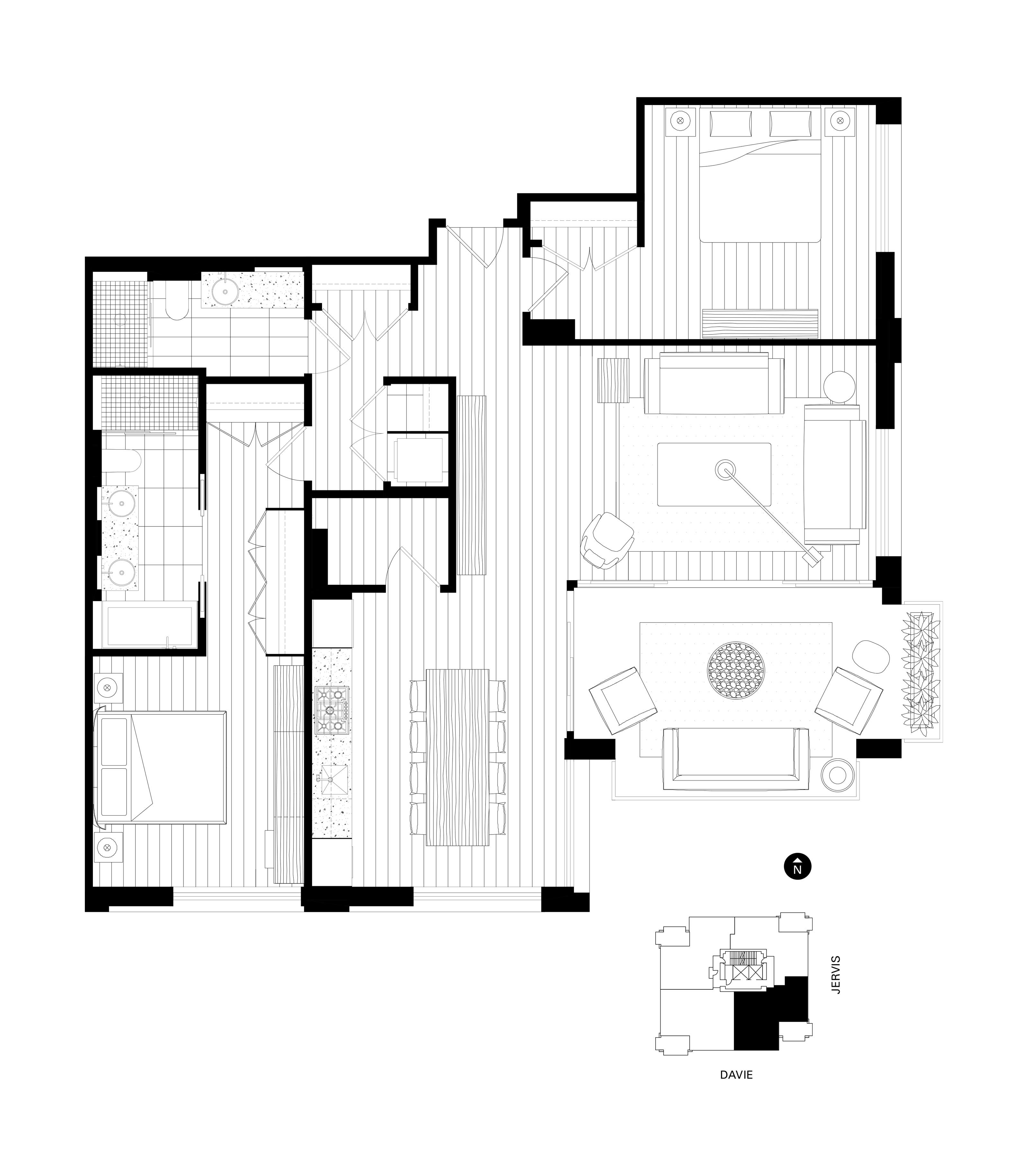 This is your opportinity to own at the Jervis with our exclusive assignment of contract. The Jervis is aesthetically striking and considered from every possible angle. It is 58 perfectly formed and carefully crafted homes, built by design and made for living. Every home is a corner suite. Intelligent space planning maximizes natural light and creates a smooth transition between indoor and outdoor living. Inside, the home offers dual millwork wardrobes and a linear kitchen with adjacent storage space that can be used as an extension of the kitchen. Outside is a generous living area with views towards Downtown Vancouver.