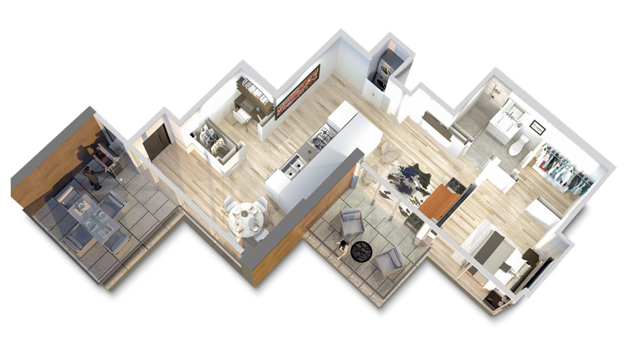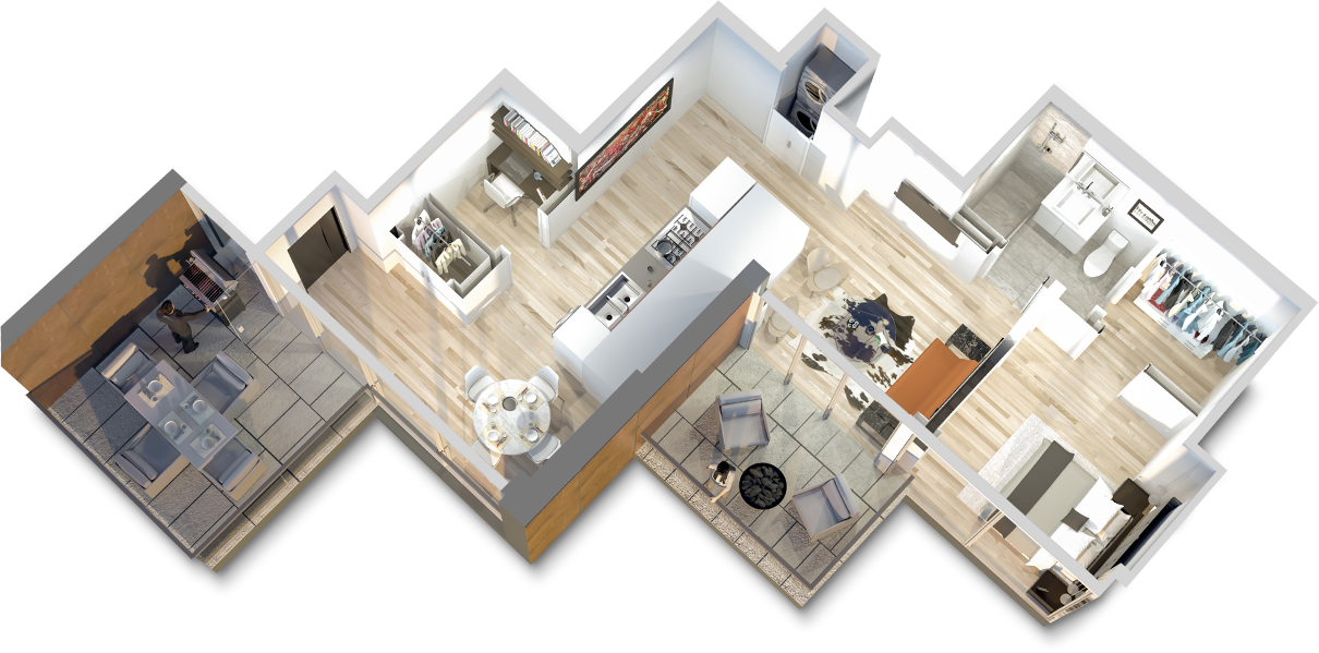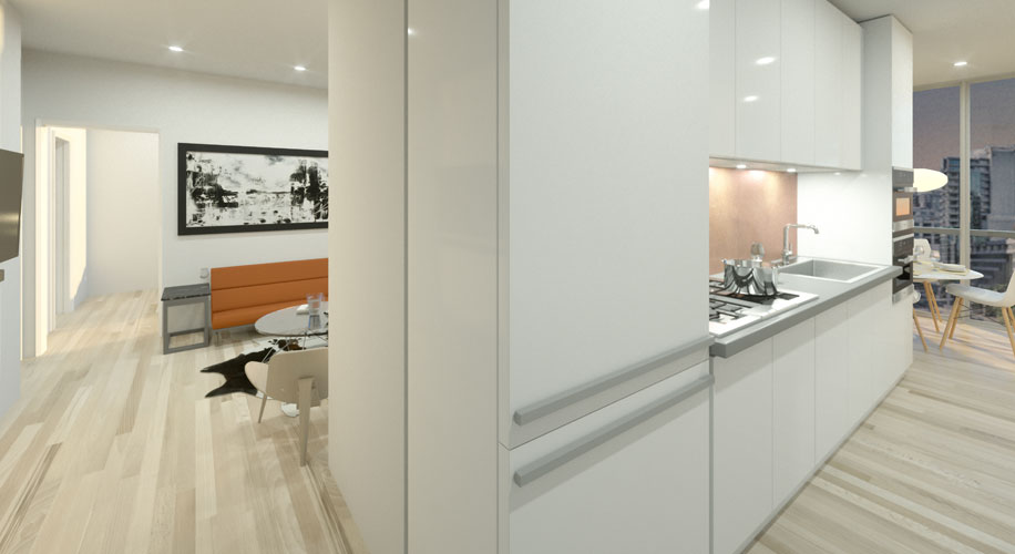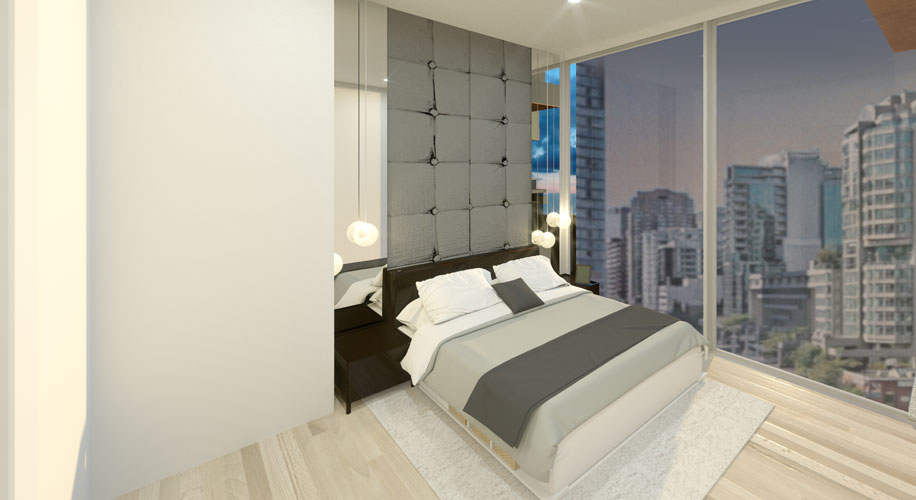 This distinctive 721 sqft custom home features two of the deepest copper-clad balconies, 198 sqft, overlooking False Creek, a Communal Terrace and green rooftops above the boutique retail podiums.